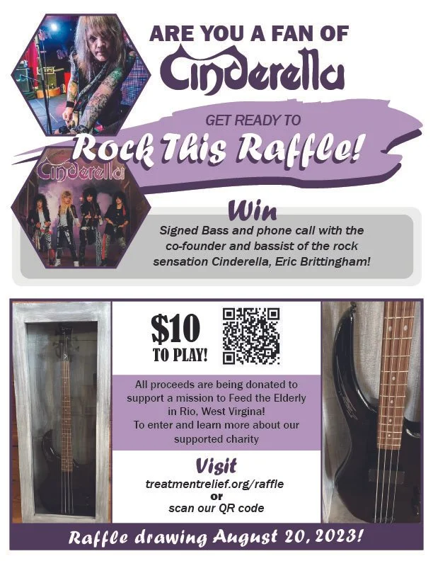 This flyer was a donated project for a charity raffle to support a Feed the Elderly campaign in Rio, West Virginia. Both the campaign and the prize were coordinated through the co-founder of the 80’s rock group Cinderella, Eric Brittingham, so the flyer plays heavily into that with theming and color palette. The dominant accent color on the flyer is purple to match old branding for Cinderella. Media for the prize was provided by the client and the other photo content was sourced externally to add both additional color and intrigue. The layout was meant to highlight the key information while also maintaining a fun and interesting rock vibe. Copy services were also provided for this project.